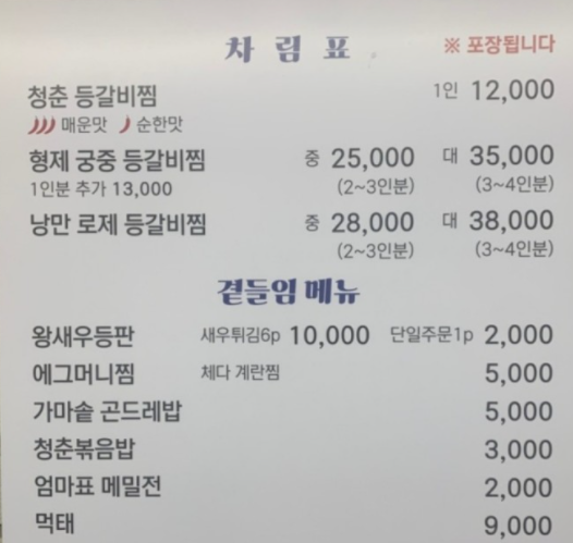 청춘등갈비찜 : 12,000원