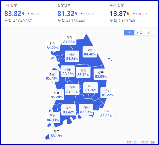 현재 백신 접종률은 80%가 넘은 상황 입니다.