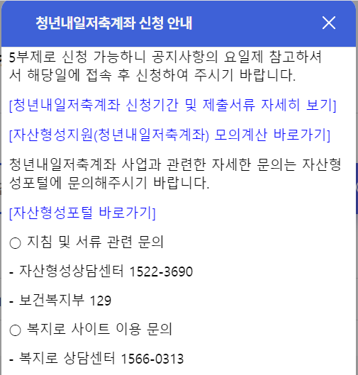 청년내일저축계좌 신청 안내