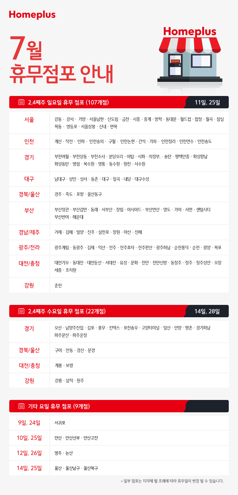 오늘은 7월 홈플러스 휴무일에