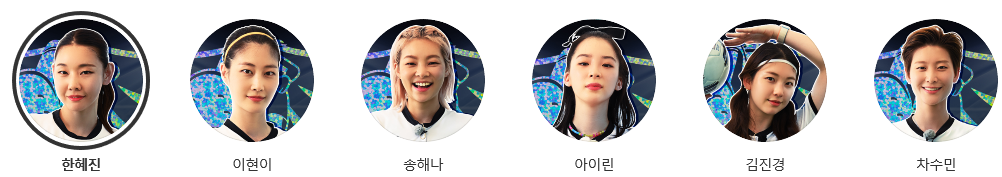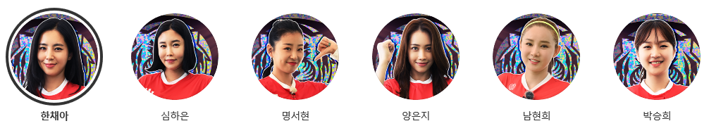 한채아, 심하은, 명서현, 양은지, 남현희, 박승희로 이루어진 팀입니다.
